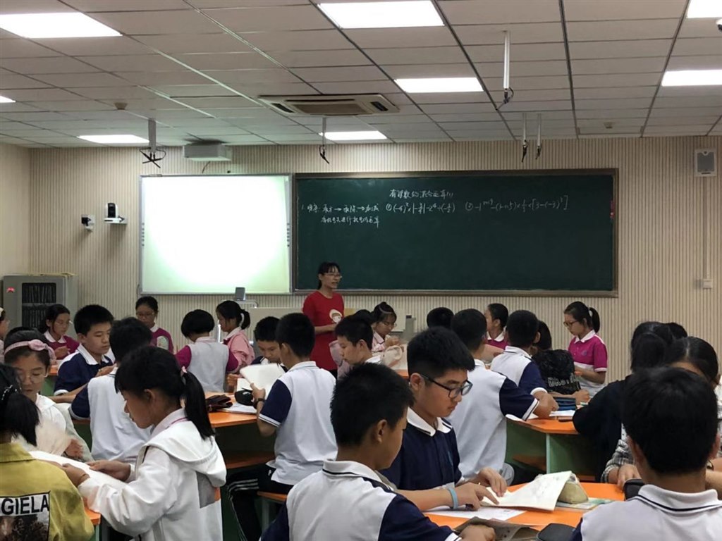 上课的课题为七年级《有理数复习》。课堂上,许秋老师重点复习的是混合计算这一块,运用类比的思想把小学的混合计算与初中的有理数混合计算联系起来,展示了扎实的数学教学功底,循循善诱,张弛有度,讲练结合。许秋老师特别注重让学生成为课堂的主人,敢于放手让学生寻找计算中的注意点,并引导学生善于用语言表达出来。听课结束后,听课的老师围绕教师的教和学生的学、学生的主体性和教师的主导性、课前预习和当堂训练等展开讨论。大家一致认为现在学生的计算能力较薄弱,在复习课中很有必要加强混合计算能力。