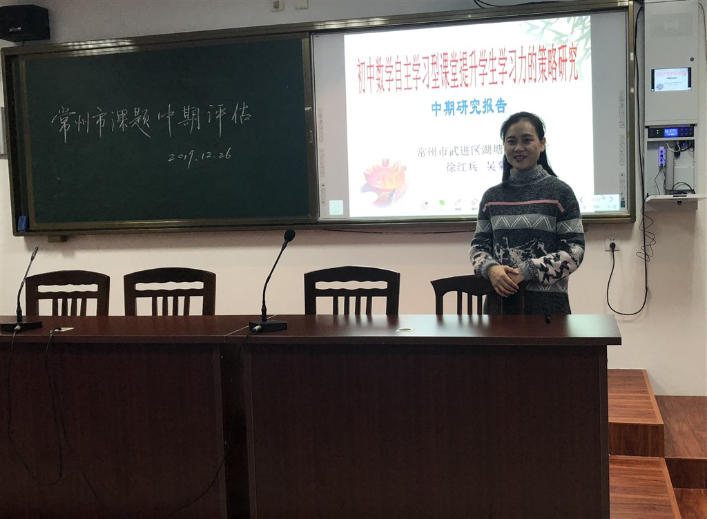 12月26日,在湖塘实验中学开展了市级中级评估活动,常州市各学校的备案课题组组员代表参加此次活动。活动采取分批分组的形式,吴菊芬老师作为《初中数学自主学习型课堂提升学生学习力的策略研究》课题的主持人进行中期评估汇报。汇报分两个环节:一是课题组代表向各位评委与老师报告中期成果,二是评委提问,代表老师答辩环节。