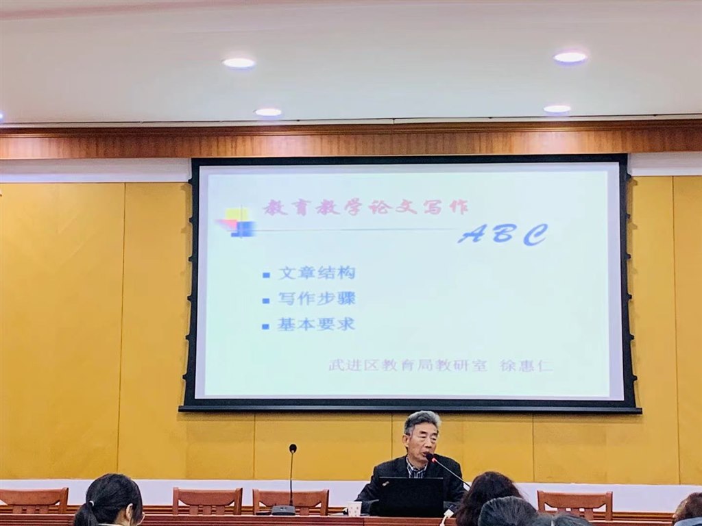 目前,在教育改革的背景下,教师的教科研水平需求加大,因此,根据老师们的需求,徐慧仁主任的讲座分两大块:教育教学论文写作和教科研课题申报。徐主任的讲解全面、细致,深入浅出,满足了老师们的写作需求。