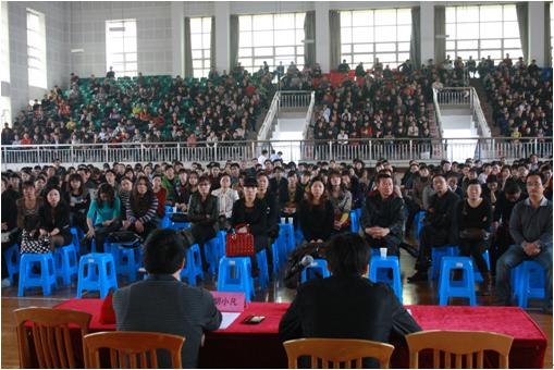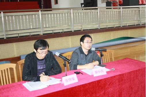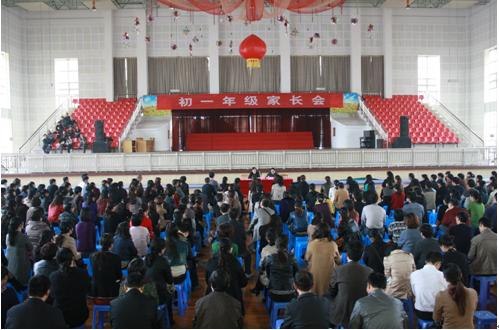 下午1点30分在学校体育馆召开了初一年级全体家长会议。会议由张伟俊副主任主持。胡小凡主任作主要讲话,他首先对学生半学期来的学习作了个总结,对家长支持学校的工作表示感谢,然后胡主任就《创造孩子的新生活》这个专题与家长共同探讨家庭教育的问题。在讲话中,胡主任用三个冲击心灵的故事来启发家长认识家庭教育的重要性与科学合理的方法,之后又从如何引导孩子怎样看待考试、分数、名次,教育的成功因素等几方面谈了自己的观点。胡主任的讲话既有理论又联系实际,深受家长的欢迎,赢得了阵阵的掌声。