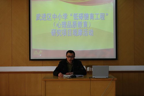 湖塘实验中学团委书记、美丽心灵项目工作室主任卞英才老师作了“以积极心理学为指导 走心理健康教育新路子”的工作汇报,从七个方面重点展开:一、创设良好的校园文化,给以学生身心发展的拓展空间;二、建构优秀的教师队伍,打造心理健康教育的骨干力量;三、建立并健全相关制度,保证心理健康教育的长期性、规范性;四、深入挖掘资源,丰富心理健康教育内容;五、采取积极措施,建立学校心理健康服务体系;六、建立并完善学校、社会、家庭三结合的心理健康教育网络;七、加强课题研究,提升心理健康教育科研能力。湖塘实验中学的心理健康教育工作既专业又丰富,受到了在场所有老师的一致认可。