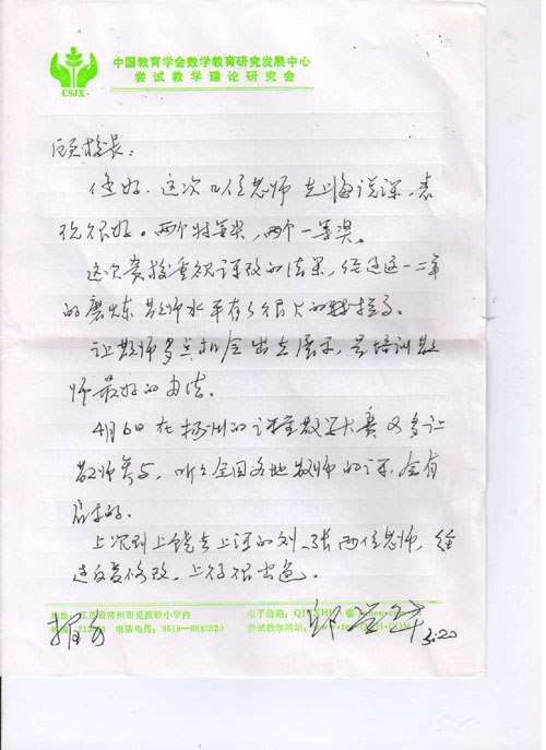 对我校取得的优异成绩,尝试教学法创始人邱学华先生特向我校寄来贺信,他表示此次说课大赛,我校取得了很好的成绩。这充分说明我校青年教师的教学理念走在全国前列;也充分说明我校的高校课堂改革成效显著;更说明我校在培养青年教师上的成功。这些优秀的教师将是全国各地教师的好榜样,是非常宝贵的资源。他非常感谢顾校长,能高瞻远瞩,让教师们走出去学习交流,提高技能,仅仅用几年时间就培养出了一大批优秀的青年教师。
