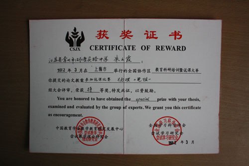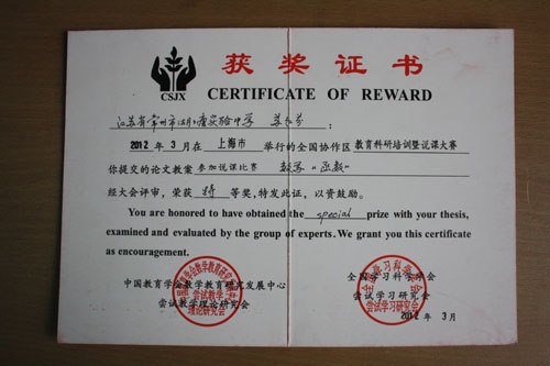 宋云霞老师和苏红芬老师获得了说课大赛的特等奖。