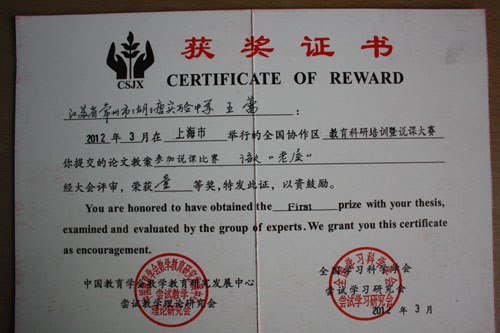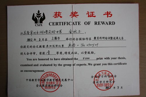 王蕾老师和金秋玉老师获得了说课大赛的一等奖。