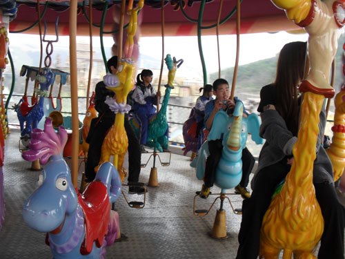嬉戏谷是家乡常州新建的动漫主题乐园,它以“动漫艺术、游戏文化”为主题,注重现代数字文化互动体验,首次将互联网技术全面运用于主题乐园,首次将“虚实互动”模式融入游乐项目,首次将线上线下两个互动娱乐平台进行有机整合,实现了超前的数字娱乐和高科技术的完美融合!同学们都是第一次参观,一个个兴趣盎然。王牌过山车可是嬉戏谷的招牌,三百六十度的翻腾让同学们的情绪在高空沸腾,而摩尔庄园则让同学们体会了小时候烂漫的童真。不少同学边走边谈论着周边的雕塑,那些动漫里面的人物和魔兽世界的主角,都是同学们的最爱。老师们也参与了同学们的狂欢,在“雷神之怒”的咆哮里混杂着他们激情的尖叫声和同学们的笑声,形成了一个和谐的整体。