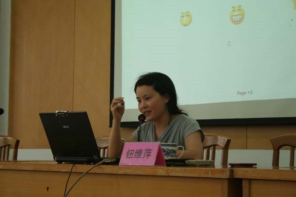 随后,横山桥高级中学钮维萍 老师向大家作了题为《教师,职业幸福感》的专题讲座。钮 老师运用心理学理论和大量鲜活的事例,从多个角度分析了教师如何使自己具有职业幸福感。钮 老师精彩的讲座赢得了大家热烈的掌声。