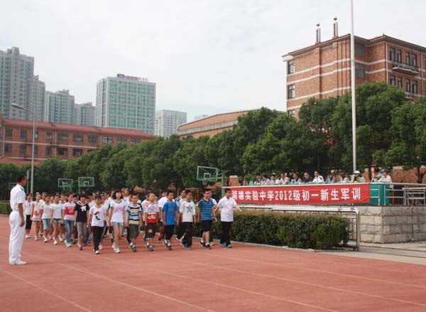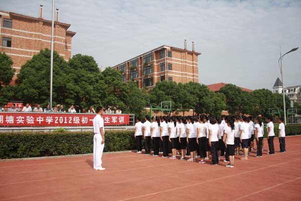 8点30分整,军训会操在湖塘实验中学操场举行。91079部队的冯连长向主席台的校领导们报告:军训会操准备完毕。“开始!”在郭曙校长响亮的命令后,会操正式开始。全体初一17个中队以方阵的形式依次来到主席台前。稍息、立正、跨立、四面转体、齐步走、正步走……在教官们的口令声中,每一个同学都一丝不苟地按要求做着,动作到位、整齐,口号声也喊得震耳欲聋,都非常完美地表现出了自己班级的整体风貌和精气神,给在场的学校领导、老师和前来参观会操的家长们留下了非常深刻的印象。这次会操也从进退场、队列操练、口令和口号、学生的精神风貌等方面进行了评比。