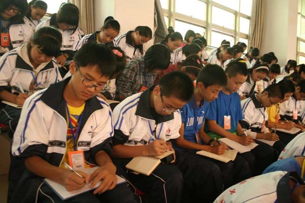 接着进行学生日常行为规范的培训。良好行为习惯的养成和提升是一个长期工程,也是一个系统工程,更是一个形象工程,它代表着个人形象、班级形象,也代表着学校形象。陈主任从走路、上课、吃饭、睡觉等十个方面向同学们明确了规范性的做法和要求。同学们专心地听着,并认真地记着笔记。陈主任向同学们现场提问,同学们的回答很到位、很精彩,我们有理由相信,初一年级全体同学遵守日常行为规范不会只停留在嘴上,一定会落实到平时的一言一行中。