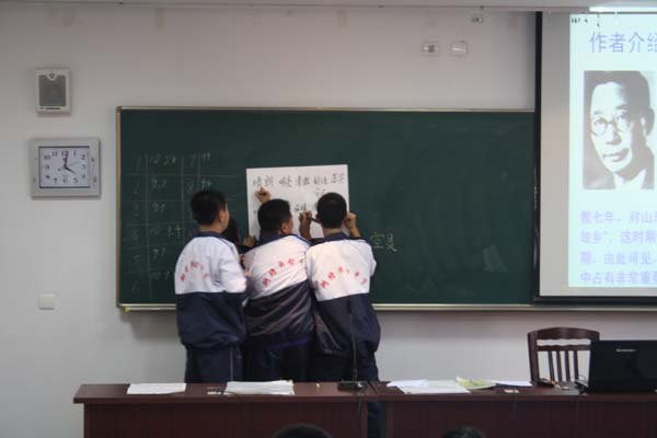 上课之前,邱校长做了充分的准备,无论是教学案的设计还是精美课件的制作,都能看出他为这节课花费了诸多心思。课堂教学中,从预习反馈到作者的简介,从字词的学习到朗读的指导,邱校长都遵循着“自主学习、小组互动”的展示,学生完全沉浸在自学的乐趣之中。而小组合作学习的打分制度,更是让所有的学生都雀跃欲试,踊跃争取,积极主动参与到课堂教学中来。该课一扫传统课堂的沉寂,有效激发了学生的兴趣和热情,使学生真正成为了课堂的主人,每个学生都很积极主动,唯恐落后。及至下课铃响,同学们都似乎意犹未尽,他们纷纷表示,从来没有上过如此生动活泼的课。