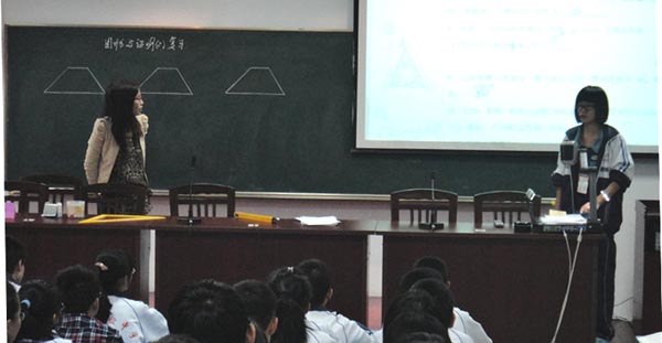 首先,兄弟学校的老师们共同观摩了我校温翠云老师《图形与证明(二)复习》的研究课。随后与会老师们就本堂研究课为切入点,共同探讨了当前初三数学课堂教学过程中的难点、重点、关注点。针对温老师的课堂,各位老师从学科理念、教学案设计、教学过程、高效课堂效果等各方面给予了中肯的评价,同时也提出了宝贵的建议。