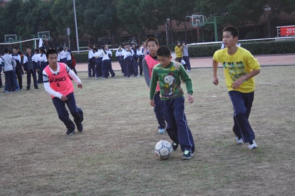 11月5日 下午,在初一年级1—9班的课外活动课上,一声哨响拉开了2012年湖塘实验中学初一年级足球联赛的序幕,足球场上顿时响起阵阵的呐喊助威声。球场上的运动员,发扬了团结拼搏精神,全力以赴投入到比赛中,踢出了速度与激情。时而一脚精彩绝伦的传球,时而一记惊心动魄的射门,时而一处你追我赶的拼抢,引得围观的啦啦队员们“心随球动”,呐喊声此起彼伏。