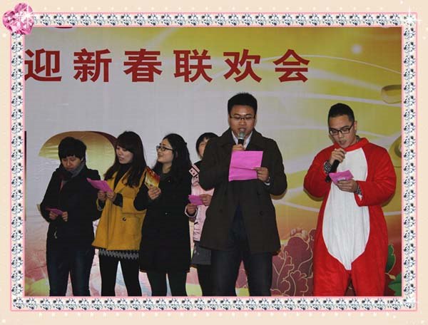 本次联欢会演出由朱文进老师、汤旭婷老师、李焕老师和周玲老师共同主持。联欢会在音体美组欢声笑语的舞蹈中拉开了序幕。顾志平校长用歌曲《好人一生平安》向全体教职工致以最诚挚的祝福。随后,各年级部、学科组教职工纷纷登台亮相,节目形式也多种多样,有独唱,舞蹈,小品,戏曲和大合唱。演出中还穿插了趣味互动游戏。语文组的舞蹈《最炫民族风》展示了语文组老师年轻的活力;地生组的舞蹈《小鬼当家》老师和孩子混搭,让整个体育馆充满了活泼的气息;后勤员工的舞蹈《盼团圆》和《新年乐逍遥》充满了浓浓的年味,让人身临其境;数学组的舞蹈《江南style》将2012年最牛的神曲表现的淋漓尽致,更是把现场的气氛推向了高潮。整场演出在大合唱《相亲相爱一家人》的歌声中圆满结束,载着美好的祝愿,在2012年辉煌的基础上,我校又开始了2013年新的一年的征程……