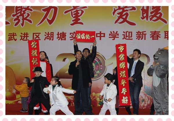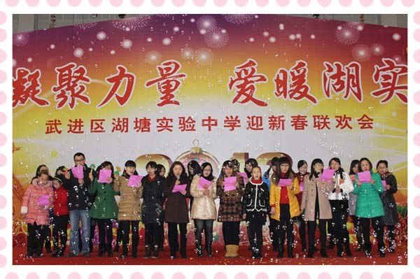金蛇腾云驾雾来,祥龙摆尾挥手去,2013年寒假的湖塘实验中学体育馆张灯结彩,灯火辉煌,春意融融,大家欢声笑语,喜气洋洋,处处洋溢着节日的喜庆气氛。我校2013年新春教职工联欢会在这里举行。学校全体教师和后勤职工欢聚一堂,共庆新春佳节。