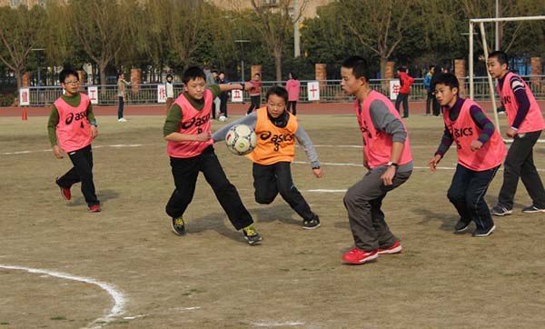 比赛过程惊心动魄,扣人心弦。比赛还未开始,无声的硝烟已弥散在球场上。哨音响起后,初一(4)班的同学立即发起总攻,一记猛射,洞穿对方球门,上半场以1:0结束。