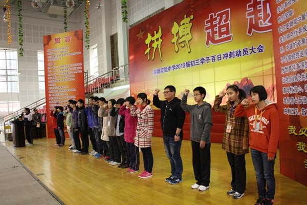 时光荏苒,三年的初中学习生活转眼间便快要过去。仿佛就在昨天,初三的学子带着满心的兴奋与自豪踏进了湖实中的校门,从此作为一名光荣的湖实中人。三年里,他们用一次次独特的经历为自己的初中生活添上一抹抹缤纷的色彩。而如今,昔日懵懂的他们,在一次次蜕变中逐渐成长起来,站在了人生的第一个转折点。3月10日,是我们2013届初三学子中考百日冲刺的日子。