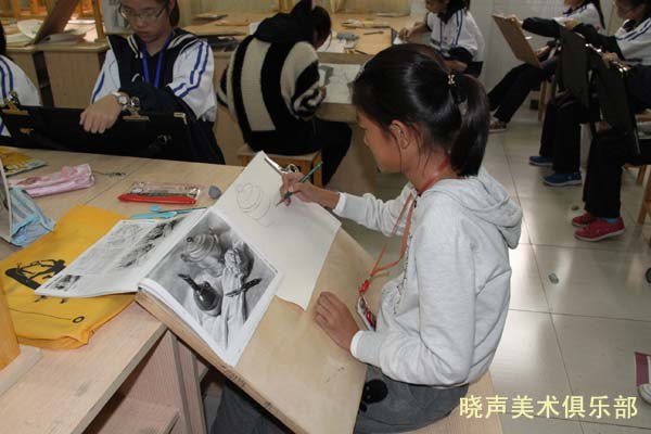 学生返校后,面对的不再是作业、考试、默写,而是可以选择“晓声文学社”、“晓声机器人俱乐部”、“晓声摄影社”、“晓声海洋社”、“晓声书法俱乐部”、“晓声电影欣赏俱乐部”等24个社团,从下午的3:20一直在俱乐部里“团”到4:50。其中,“窗外晓声俱乐部”、“晓声海洋社”、“晓声生物俱乐部”等更与研究性课题相结合。