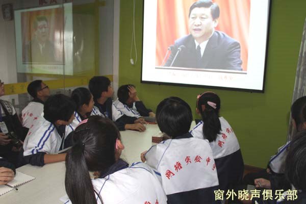 上周日下午,湖塘实验中学的晓声学堂正在播放关于中日钓鱼岛的短片,不过这不是在上历史课,也不是在做爱国主义教育,而是窗外晓声俱乐部正在进行社团活动,本期的主题是让学生了解中日关系的现状及未来趋势。