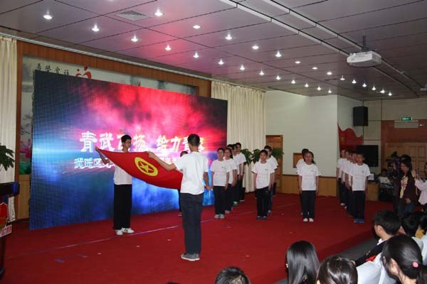 《五四之火永不停熄》朗诵和《怒放的生命》舞蹈拉开了团日活动第一篇章“秀美青春”的序幕。团区委书记王伟强现场揭晓了《青武飞扬Ⅱ》团干部原声大碟,6位青年团干现场联手献上了青春组曲联唱,唱出了团干部们的青春梦想,更唱出了团干部们的青春风采。