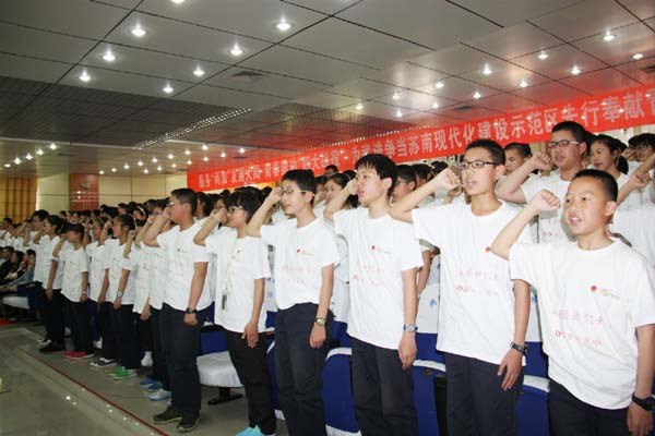 今年是建团92周年、五四运动95周年,为进一步弘扬“五四”精神、展现青春风采,武进团区委联合我校团委隆重举行“青武飞扬·给力青春”武进区纪念五四运动95周年主题团日活动——第六届“十佳青年”颁奖礼暨“00” 后入团礼。团市委副书记、党组副书记潘文卿,区委常委、组织部部长孙金才,区人大常委会副主任邰建平,副区长薛建忠,区政协副主席陆小玉等领导与十佳百优“我们身边的武进好青年”代表 、湖塘实验中学“00” 后新团员代表、基层团干部、青联委员共计500余人参加了此次活动。