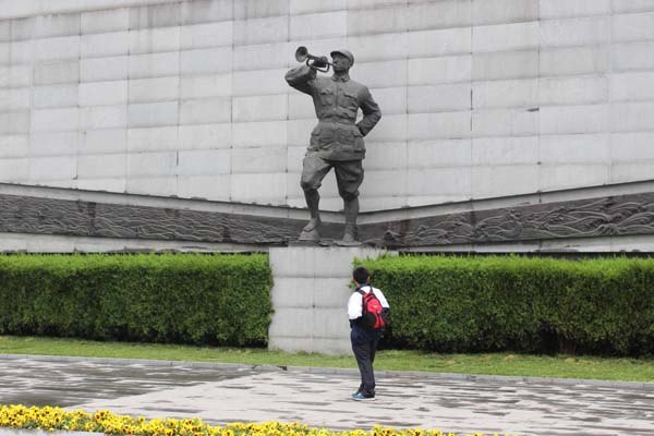 南京不是一座一般的历史文化名城,她是一座故都,一座曾经繁华富庶、人文荟萃,同时也历遭战火,屡受蹂躏的城市。清早,迎着蒙蒙细雨,同学们的南京之行第一站来到了位于江东门的侵华日军南京大屠杀遇难同胞纪念馆。这里是侵华日军南京大屠杀江东门集体屠杀遗址和遇难者丛葬地。整个纪念馆的建筑物采用灰白色大理石垒砌而成,一进门,同学们便被气势恢宏,庄严肃穆的气氛感染,一张张真实的历史老照片,一幕幕还原的历史场景,同学们一路前行,一路震惊,一路哀叹,一路深思。此次此刻,沉重的历史激荡着每一个同学的内心,留下了刻骨铭心的印记和感悟。纪念馆是一面“镜子”,它反映了当时的真实面目,供后人品尝,这就是历史,不能改变,但也决不能忘记。