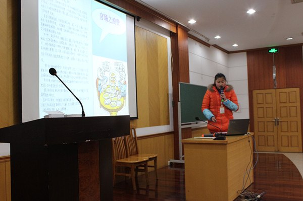 小组成员在组长的带领下上台展示,分工合作,相得益彰,把研究性学习课题的选择、研究过程、研究成果、收获与困惑等一一展示给了全体老师,赢得了老师们的一次次掌声。