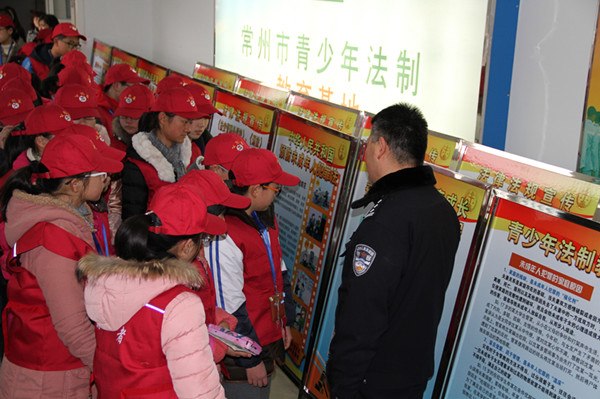 常州市公安局监管支队葛茂斌副支队长热情接待了我校小记者,在他的带领和讲解下,小记者们参观了市青少年法制教育基地。展览区内陈列着预防青少年违法犯罪、禁毒宣传、交通安全、消防安全等标语和图片,触目惊心的画面、详实的案例无一不向小记者们诉说着远离违法犯罪的重要性。