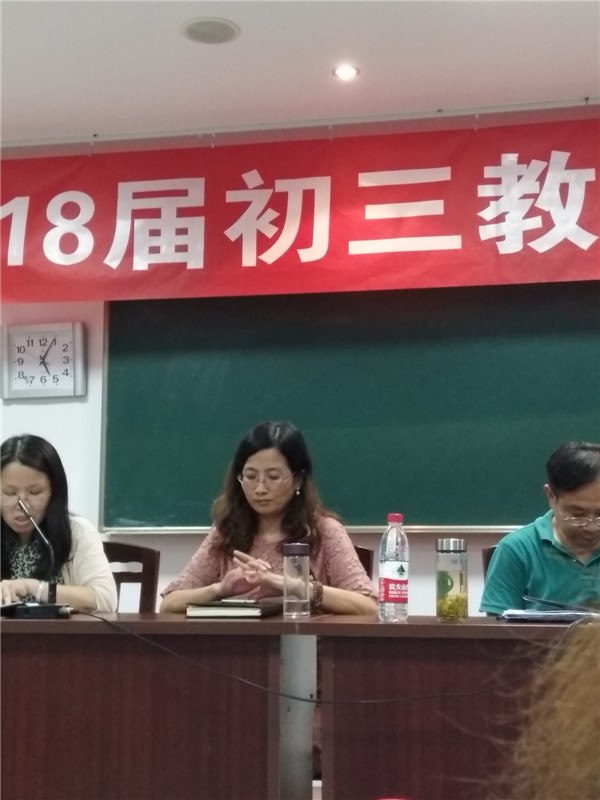 下午1点半,会议继续。先由教师代表发言。年级部副主任许丽丹、朱蕾提出要增强目标、管理、服务意识;学科组长代表苏红芬、王霞、李丹就提优补差与学科发展与大家分享了经验与做法;班主任代表夏忆、叶飞对班级管理谈了自己的体会;易婧、周文杰、曹辉、沈晓霞、濮亚洁就首次上初三表达了自己的坚定决心。