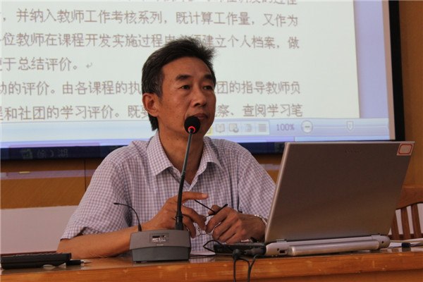接着,原区教研室徐惠仁主任为老师们进行专题培训。他对我校的校本课程的开发和实施作了客观的分析,对进一步加强校本课程的开发与管理提出了具体的要求和建议,尤其是对如何撰写校本课程简介对老师们进行了详细的指导。