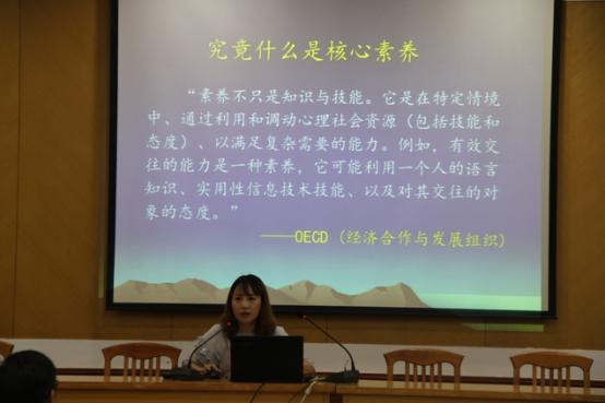 随后化学学科部、政治学科部、历史学科部、地理学科部、生物学科部、音乐学科部、美术学科部、体育学科部和信息学科部各主任依次介绍了本学科部的核心素养和关键能力的内容和实施建议。