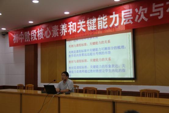 胡小凡主任从关键能力与课程标准的关系;考纲与课程标准,关键能力的关系;教材与课程标准,关键能力的关系等三方面作了详细的介绍,强调了学科关键能力层次布局的重要意义。