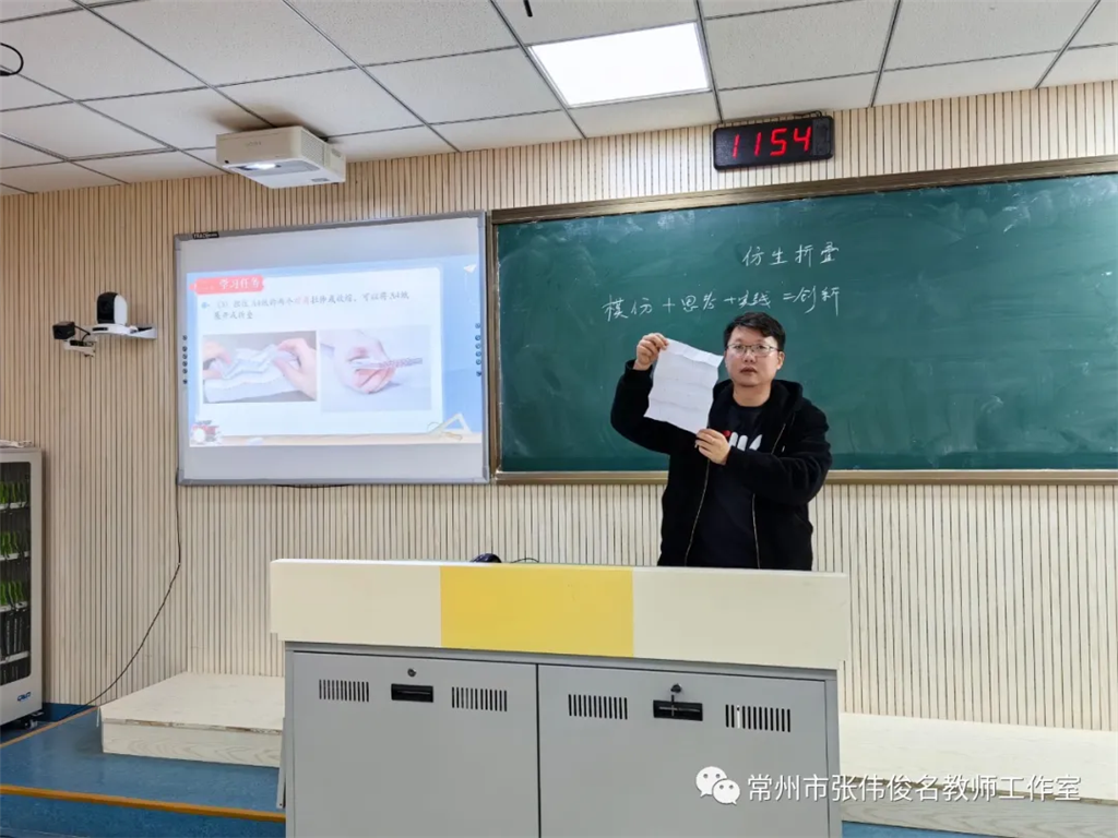 当前,乡村教育对教师所提的要求越来越高。赋能乡村教师,首先要把握其培养方向。课堂是教育教学的主战场,是教师专业发展的主阵地。因此,培育站致力于为提高学员的教学水平和教学质量提供指导,使学员能真正成为乡村学生数学教育和素质教育的引导者,成为乡村数学教育的带头人。13日上午,由培育站学员、常州市武进区湖塘实验中学的蒋超和陆樱花老师分别开设了《仿生折叠》、《探秘绿波带》综合与实践课。蒋老师的课,通过视频让学生感受仿生世界的价值,激发了学生的学习兴趣。学生在动手操作的实践过程中,不仅学会了一种仿生折叠的方法,还用欣赏的眼光在比较中发现仿生折叠相比其他折叠方式具有节省空间、易于收缩和展开等优越性,从而丰富了学生对数学折叠的认识以及感受从生活中受到的灵感启发。陆老师将生活中的绿波带引入了数学课堂,不仅让学生了解了何为绿波带,更是借助数学的手段研究如何一路绿灯的通过绿波段。在探究过程中,陆老师尊重学生的认知规律,由浅入深,循序渐进引导学生采用平面直角坐标系进行设计方案,传授知识的同时,更是渗透了数学方法。