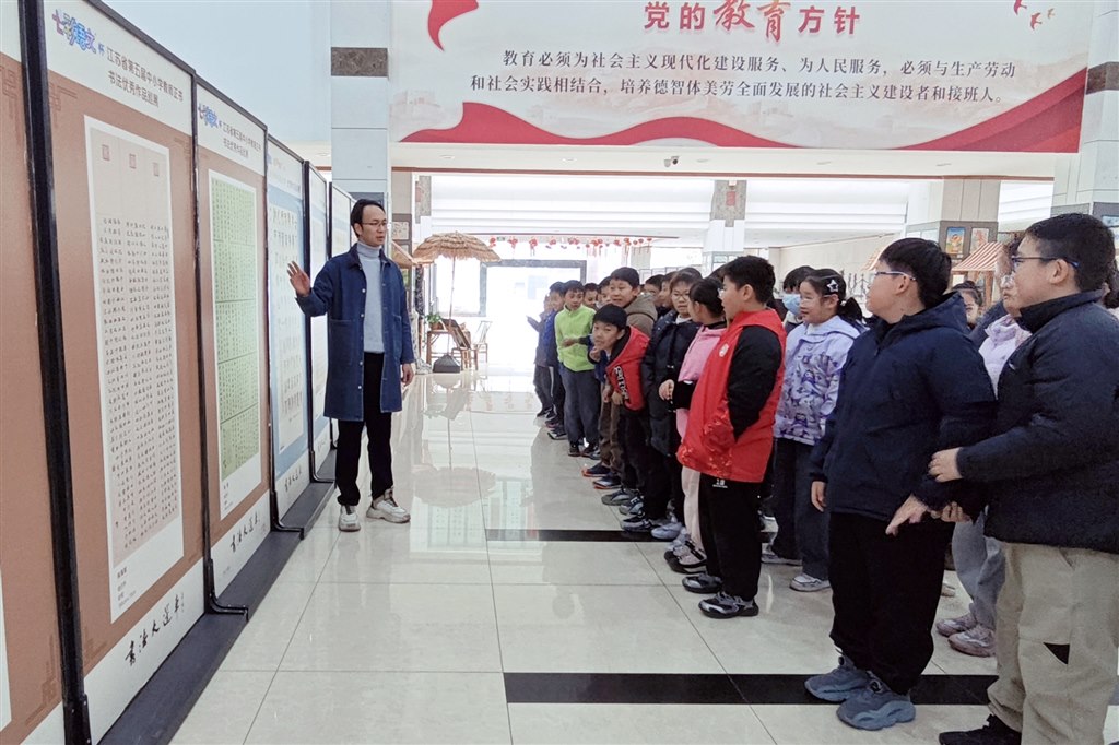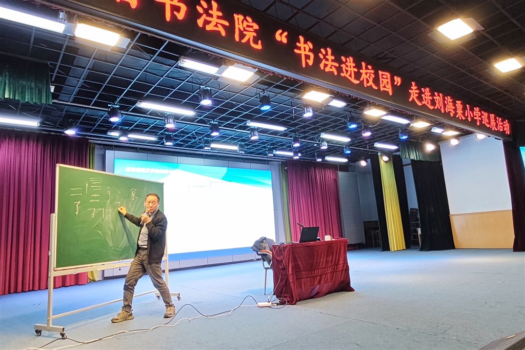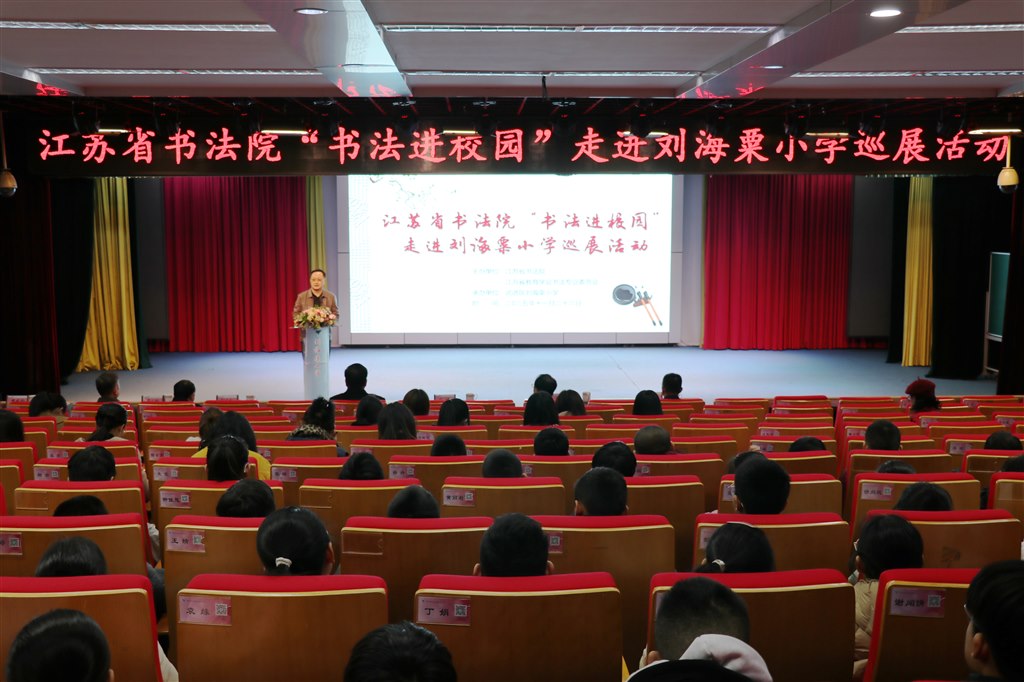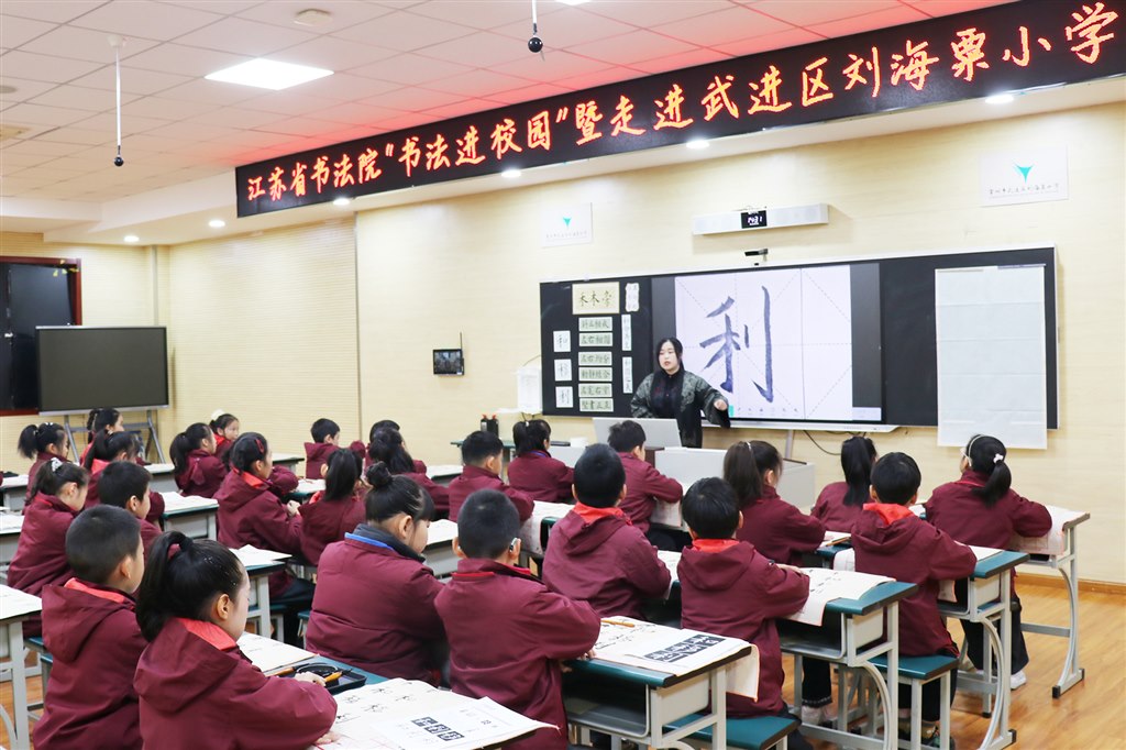暖阳映墨韵,真情沁书香。为深入落实传承中华优秀传统文化和美育精神,提升师生书法审美能力,夯实师生汉字书写根基。11月26日,由江苏省书法院、江苏省教育学会书法专业委员会、武进区学校和教师发展中心、《七彩语文》杂志社联合主办,武进区刘海粟小学承办的江苏省书法院“书法进校园”、七彩语文“书法大篷车”巡展暨武进区中小学书法教研、《美育浸润视域下中小学书法教学策略研究》课题组、张玲珑名教师工作室活动,在刘海粟小学圆满举行。江苏省教育学会书法专委会理事长陈钢,江苏省书法院研究部主任郑长安,江苏省硬笔书法家协会副主席刘有林,武进区教育局副局长庄骅,武进区基教科副科长陆琪,常州市书法教研员景文静,以及课题组、工作室全体成员,武进区各中小学书法、美术教师齐聚一堂,共赴笔墨飘香的文化盛宴。