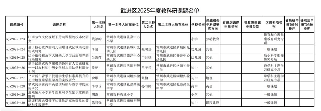 武进区2025年度教科研课题名单
